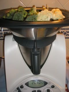 Quanto à pescada eu utilizei o tabuleiro intermédio por uma questão de espaço, aliás faço sempre isso quando não cabe tudo na Varoma inferior.