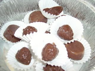 Colocar em moldes e levar ao congelador, ou frigorifico de um dia para o outro. Eu usei couvetes para o gelo (em forma de gomos de laranja, uvas e normais) como molde.
