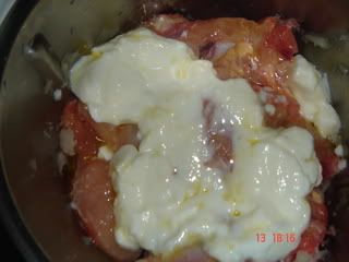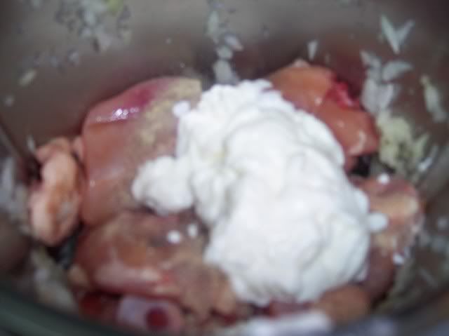 Acrescanta-se o iogurte, o azeite e um pouco de agua ( meio copo do iogurte),
