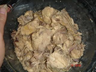 Junta-se o frango cortado aos bocadinhos, limpo de peles e gorduras, o sumo do limao, sal e pimenta