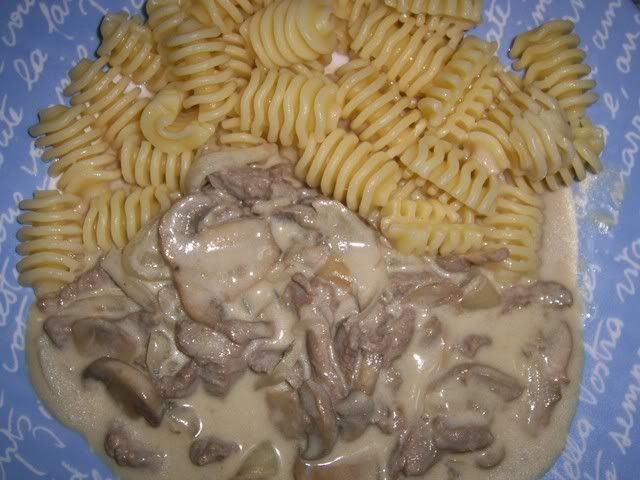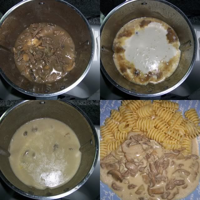 Hoje o nosso almoço foi esta receita de Strogonoff...que é a receita que vem no livro base da Bimby.