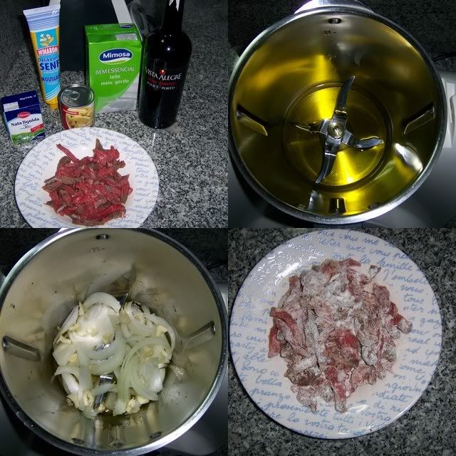 As alterações foram que usei 250gr de tiras de peru e 250gr de tiras de vitela.