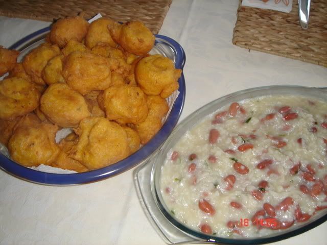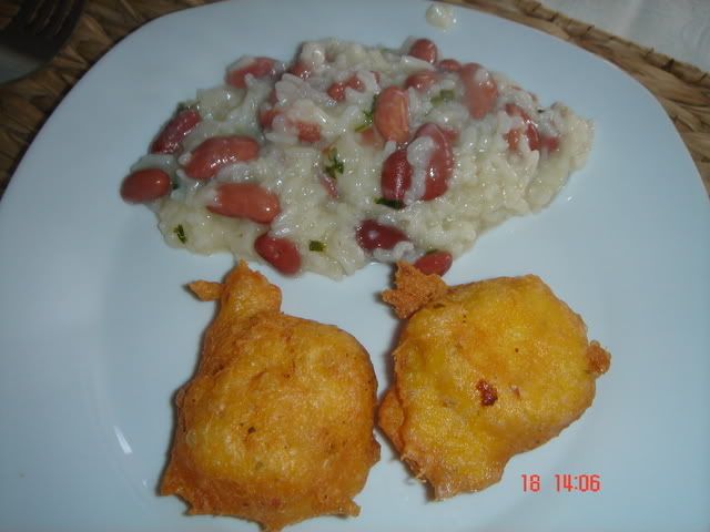 A acompanhar um arroz de feijao com coentros, feito por a filhota enquanto eu fritei os sonhos