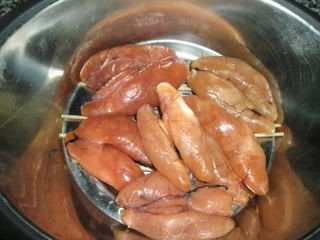 Eu adoro ovas! As tuas eram congeladas? E deixaste as descongelar? É que não gosto nada de ovas que arrebentam com a cozedura e as tuas tinham um aspecto tão bonito! E ví também uns pauzinhos de espetada. É para não pegarem ao fundo? è só perguntas!