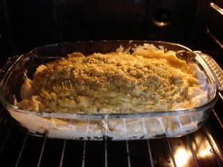 Juntar a quantidade de bechamel que achem necessário ao preparado de bacalhau e envolver muito bem. Eu não juntei o bechamel todo porque era muito. O que me sobrou coloquei num recipiente e congelei.