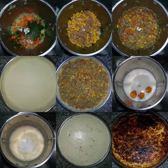 Mas como cá em casa, gostamos de pratos com mais "sustento", hoje para o jantar resolvi adaptá-la e baseada nesta receita e surgiu uma tarte a que chamei