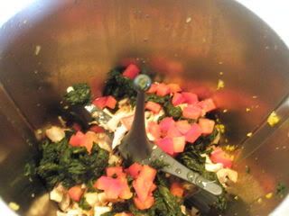 Cozer os espinafres, deixar arrefecer, escorrer mto bem e reservar. Eu cozi os meus (eram congelados) 5m no microondas