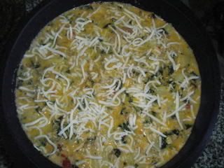 Deitar numa forma, polvilhar com o queijo ralado e levar a cozer 20 a 25m, em forno pre-aquecido a 200º