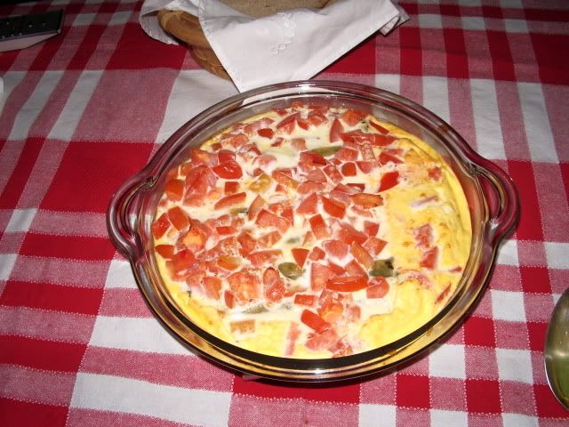 Bater os ovos com o iogurte e deitar por cima do tomate.