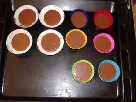 Hoje, contagiada pelas imagens da gisa, resolvi fazer estes muffins... Ainda não provei, mas de aspecto estão bons!! Vou levá-los para o guloso da família...