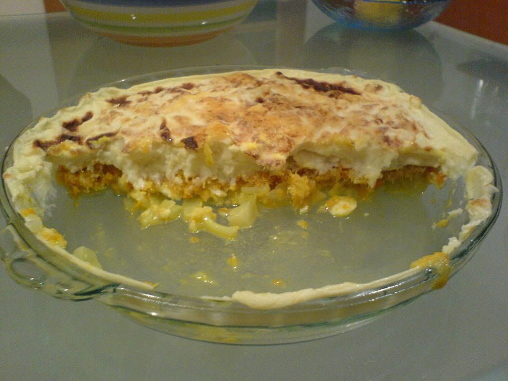 Entretanto fiz o bechamel, coloquei por cima, "enfeitei" com queijo e foi a gratinar.