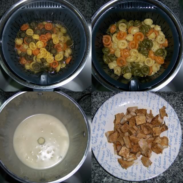 "Na natureza nada se cria, nada se perde, tudo se transforma" Cozi massa na Bimby (Cappelletti tricolor) e fiz molho bechamel (segundo a receita do livro base).