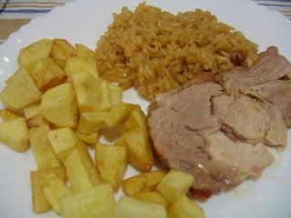 Claro que, como cozi o arroz no copo ao mesmo tempo do Lombo, acrescentei mais água de modo a que o arroz cozesse bem.